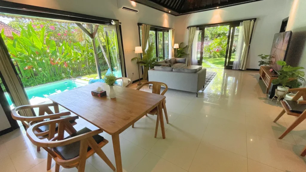 The Santi Estate Sanur is a privately operated 3-bedroom garden pool villa in Sanur, Bali, designed for guests seeking privacy, space, and a peaceful residential stay.